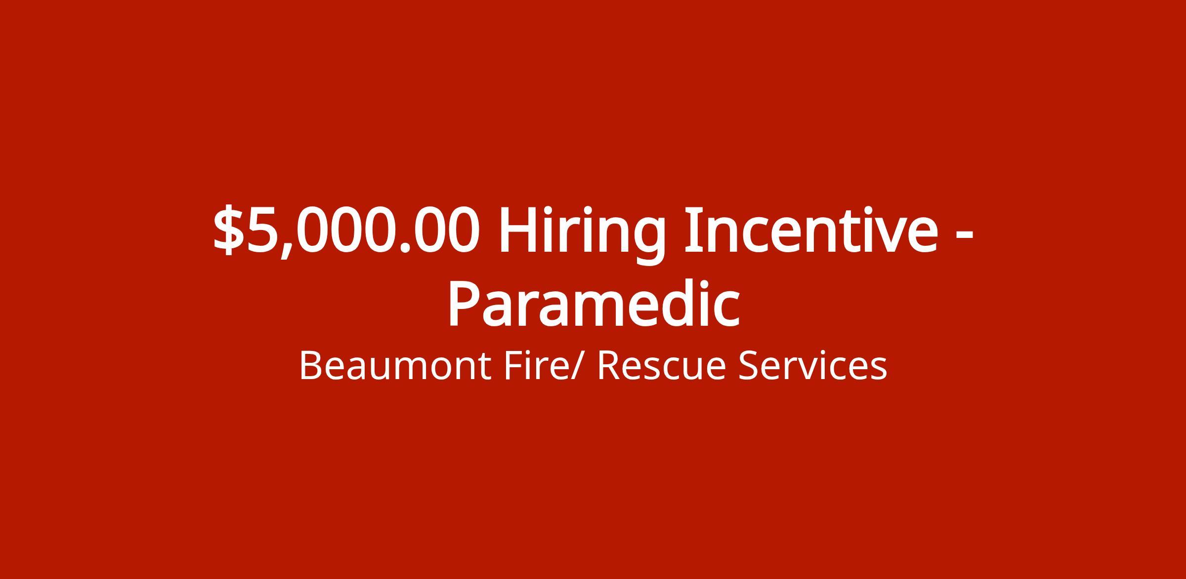 EMS crew member serving on EMS unit, responding to emergency and non-emergency calls, assessing and providing medical care, operating response vehicles, maintaining equipment, and instructing on emergency care. Includes $5,000 hiring incentive.