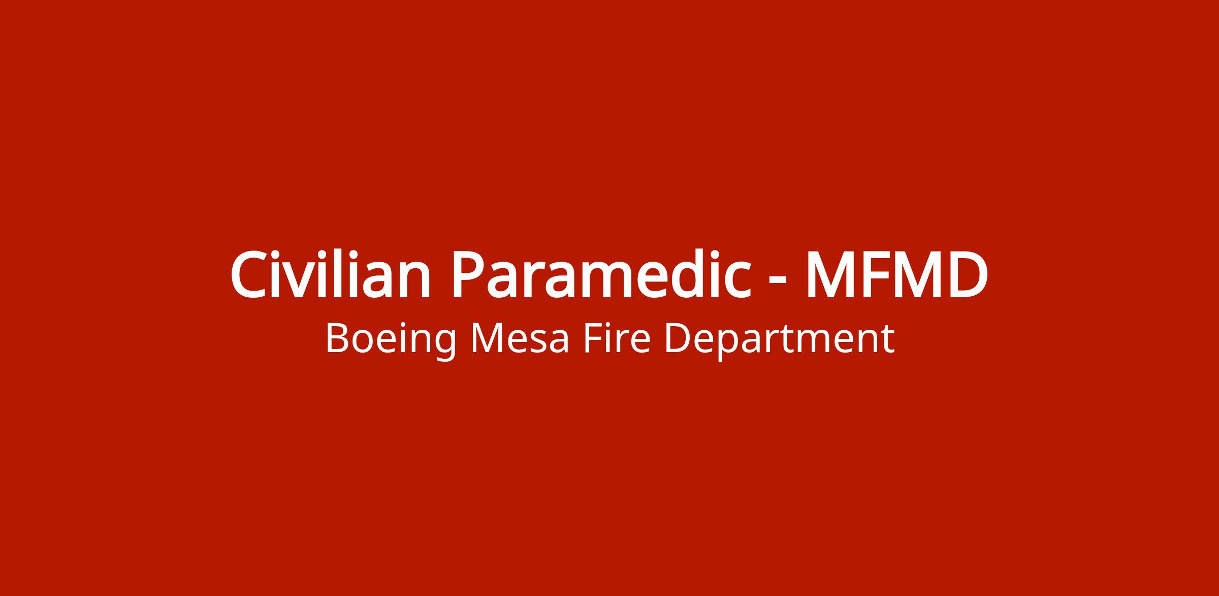 Civilian Paramedic position with Mesa Fire and Medical Department (MFMD). Works on 12-hour or 24-hour Kelly shift schedule with 36-48 scheduled hours per week. Base hourly pay range is $27.42 - $35.03/hour. Position is eligible for overtime.