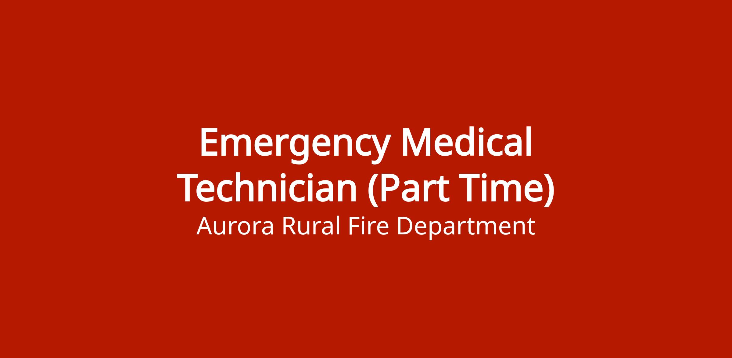Part-time Emergency Medical Technician position with the Aurora Rural Fire Department. This is a fire department EMT role.