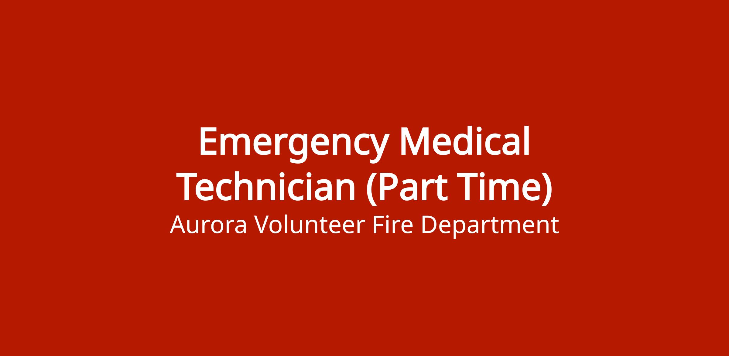 Part-time Emergency Medical Technician position with the City of Aurora Fire Department. Candidates should apply through the Nebraska NEworks job portal.