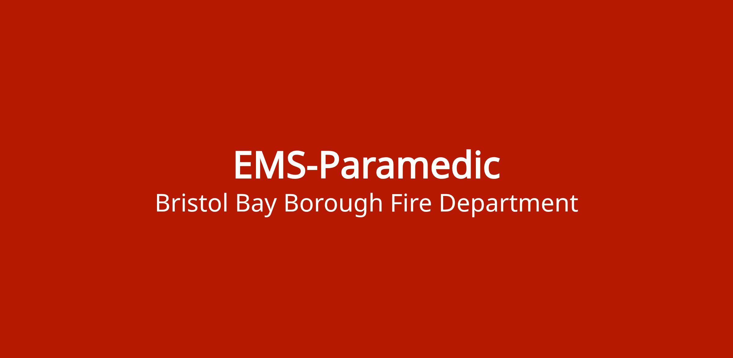 Seasonal paramedic position with Bristol Bay Borough Fire & EMS Department. Applicants must complete employment application and background check form.