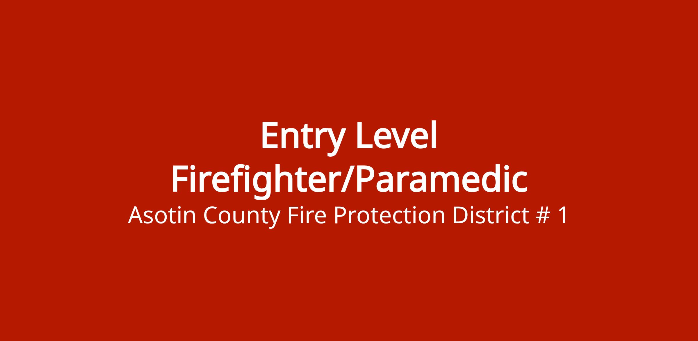 Entry level firefighter position requiring Paramedic certification. Candidates apply through the Asotin County Fire Protection District #1.