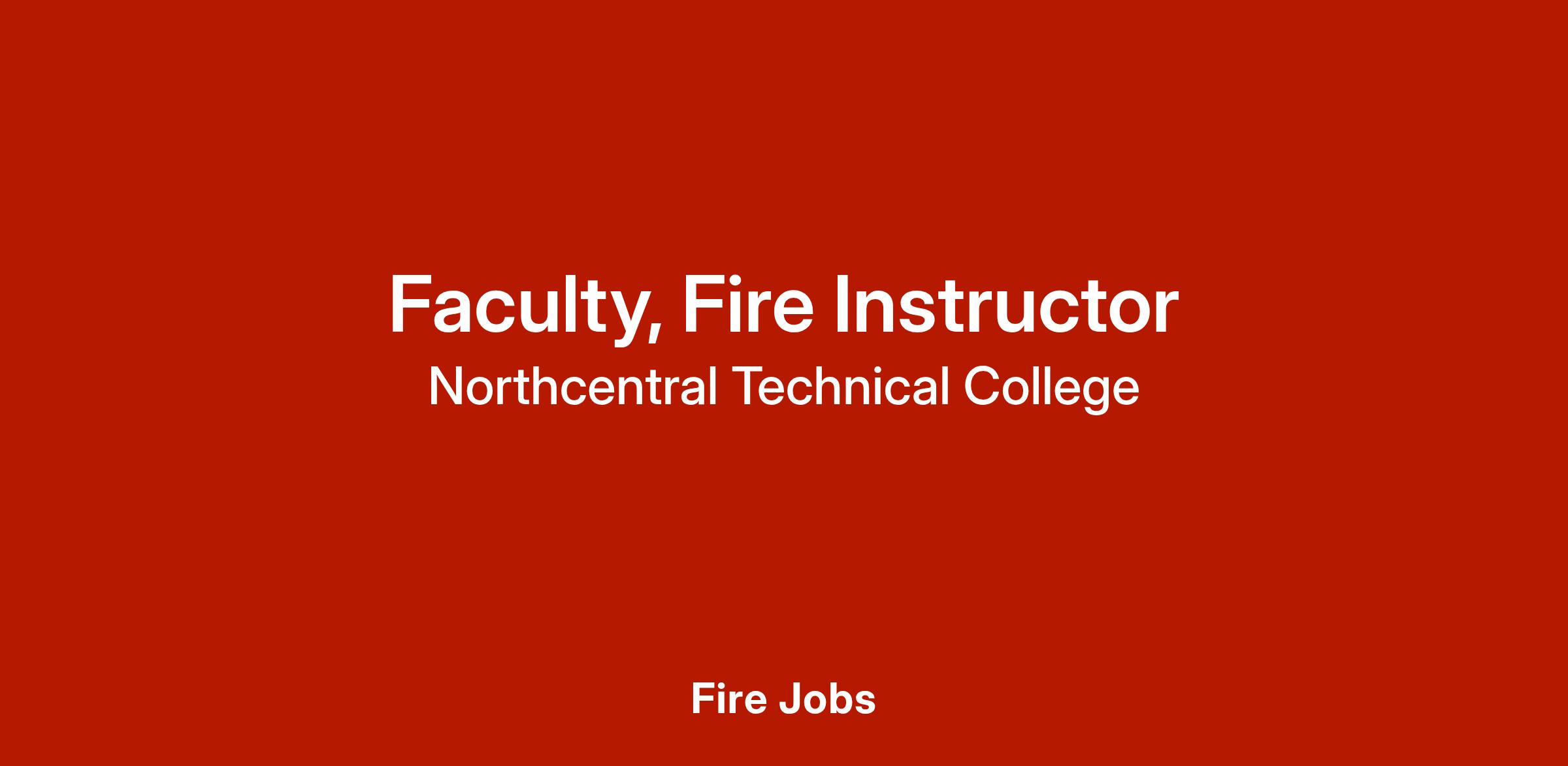 The full-time faculty supports Northcentral Technical College’s Fire Safety program by delivering high-quality instruction and fostering student success. This position is responsible for teaching courses within the program, developing and maintaining course materials, and aligning instruction with program objectives and evaluation procedures. Working 40 weeks within a 52-week academic year, faculty collaborates with colleagues, engages in professional development, and supports College initiatives to enhance the learning experience and achieve program goals.