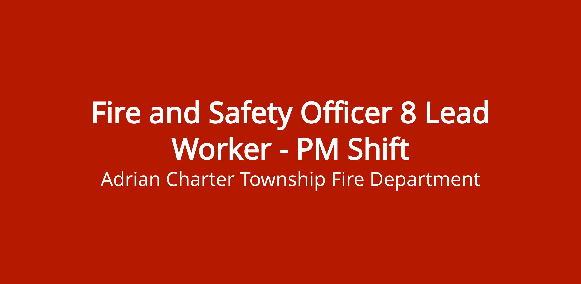Requirements: Fire safety leadership experience, supervisory skills, ability to work PM shifts