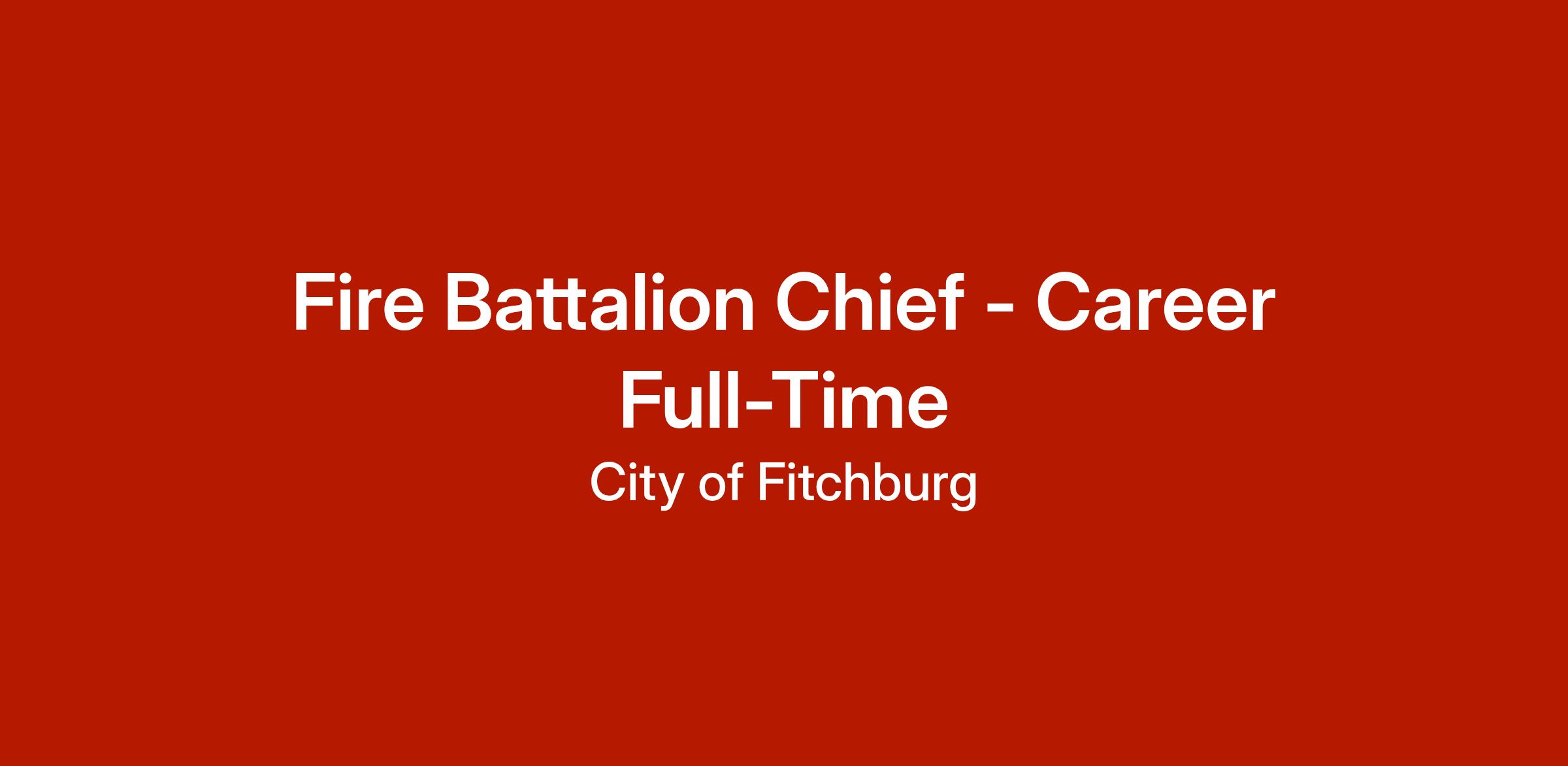 Supervises all line personnel in all fire stations on shift. Through company officers, enforces all department rules and regulations. Supervises preparation of records and reports. Investigate personnel matters and recommend corrective or disciplinary actions. Evaluate personnel performance, including recruit evaluations. Respond to fire incidents to save and protect life and property under emergency conditions. Operate hand and/or specialized power equipment and apparatus to suppress various types of fires under diverse conditions. Exercise police powers in responding to emergency situations. Operate fire vehicles/apparatus as assigned. Participate in related salvage activities. Acts as fire ground commander on all routine and emergency operations as directed, assuring that they are performed in a safe and efficient manner. Assists Fire Prevention Bureau in the determination of origin and cause of fires and preservation of scene evidence. Drive and operate firefighting vehicles and equipment. Plan, direct, coordinate, and oversee the day-to-day operations of the department to establish and maintain a safe and harmonious work environment that ensures a high degree of operational readiness at all times that maximizes the level of service provided to the community. Ensures that all companies comply with training schedules. Develops training programs, including post-incident analyses, schedules, and deliveries, and coordinates training to line personnel in conjunction with the training division. As necessary, initiate the National Incident Management System and/or incident command system and serve as the “Incident Commander” when scheduled or in the absence of the Fire Chief or other higher-ranking officer. Prepares and submits written reports as directed. Makes recommendations regarding the department budget. Assists company officers in pre-fire planning. Represents the fire department at public functions and meetings as directed. Attends staff functions. Collect information and complete necessary reports concerning fire department operations and complete related administrative tasks. Assist and/or lead the development of policies, procedures, and standards in order to enhance the overall operations and functions of the fire department and assigned program area(s) of responsibilities. Develop systems and approaches to define and meet community fire service needs. Assist with long-range planning efforts and develop pre-incident emergency response plans for facilities within the City of Fitchburg that have been determined to be a target hazard or pose a life-safety hazard. Establish, maintain, and nurture a high degree of cooperation and trust with and between governmental and community leaders, communities, boards, councils, commissions, associations, entities, and allied community service providers. Manages and coordinates facilities and vehicle programs for the department; works closely with the Deputy Chief, along with outside vendors to coordinate maintenance, repair, replacement, and operating services for the department's facilities, vehicles, and equipment. Performs other duties assigned. Approval of timecards and vacation for assigned shift personnel.