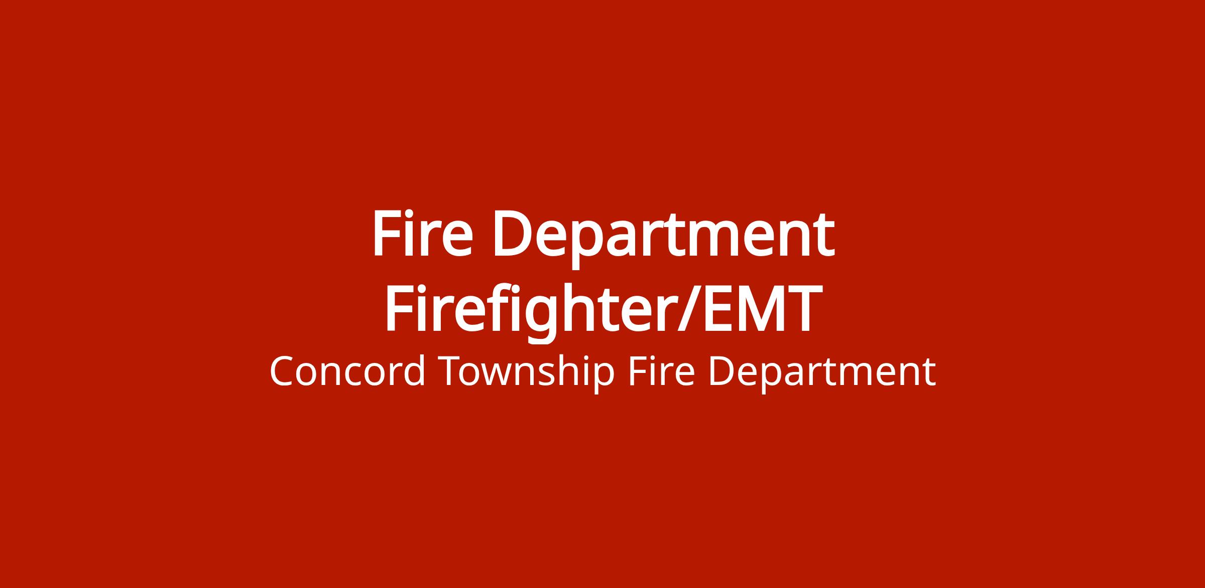 Concord Township Fire Department is accepting applications for part-time firefighter/EMT positions. Applicants must possess valid Ohio Driver's License and State of OH Dept. of Public Safety certified Firefighter Level II with either EMT/Basic or Paramedic certification.