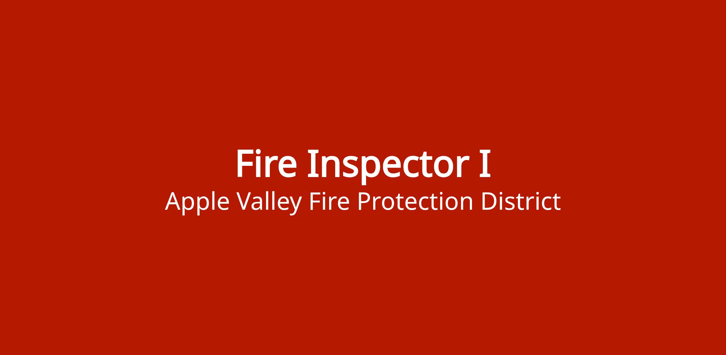 Fire Inspector I position with Apple Valley Fire Protection District. Fire inspection and prevention duties.
