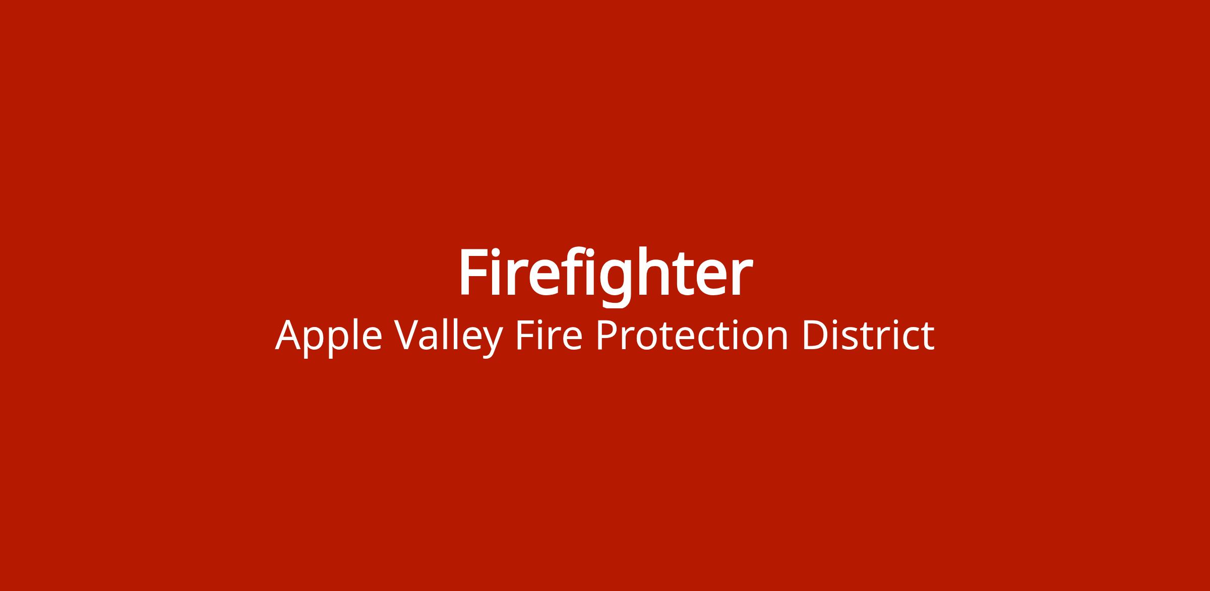 Firefighter position with Apple Valley Fire Protection District. Entry-level firefighting role with fire suppression and emergency response duties.