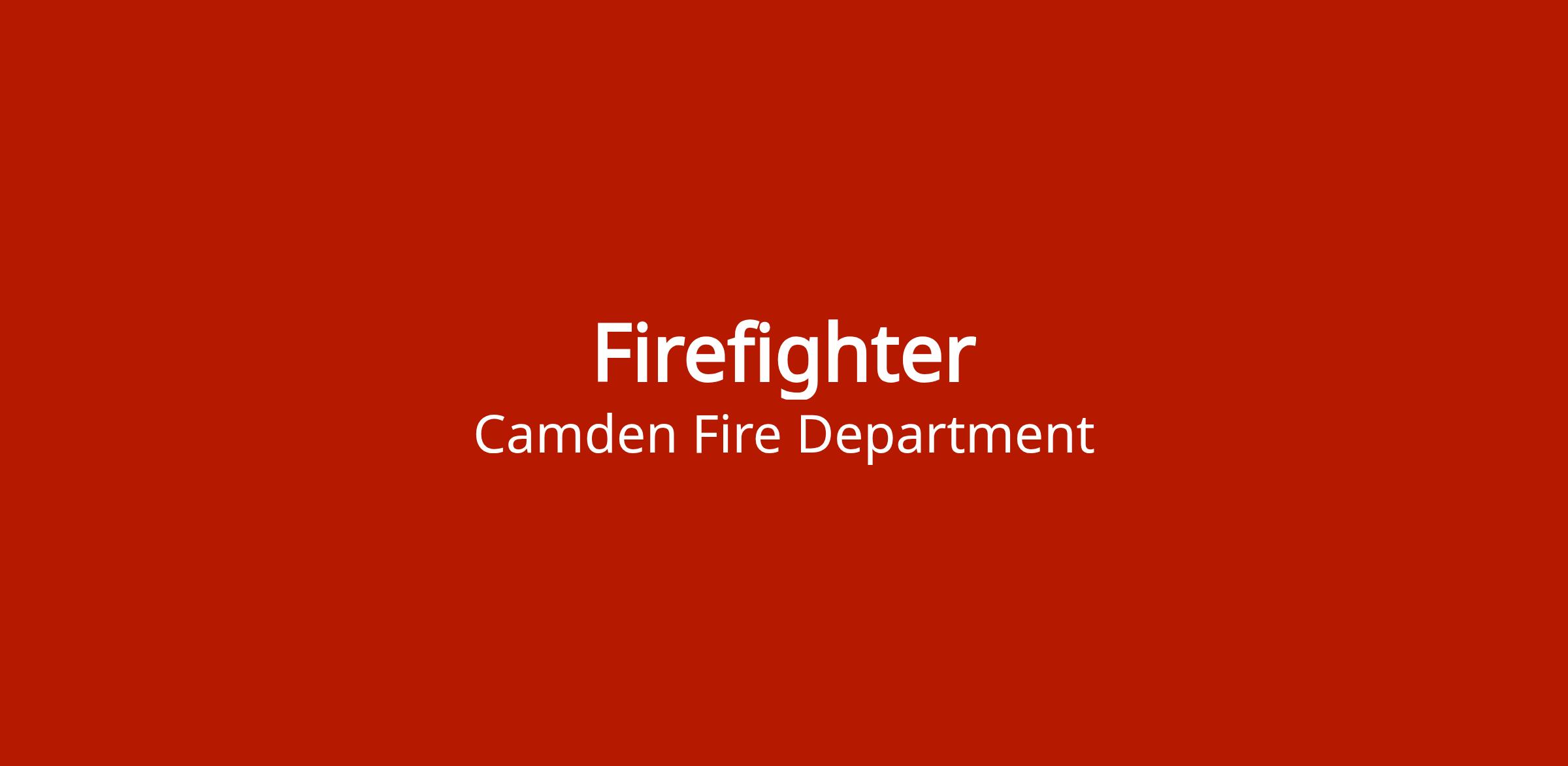 Full-time paid firefighter position with the Camden Fire Department. Requires high school diploma or equivalent, one to two years firefighting experience, and a valid SC driver's license. Includes SC Police Officers Retirement, SC PEBA health, dental and life insurance, paid vacation and sick leave.