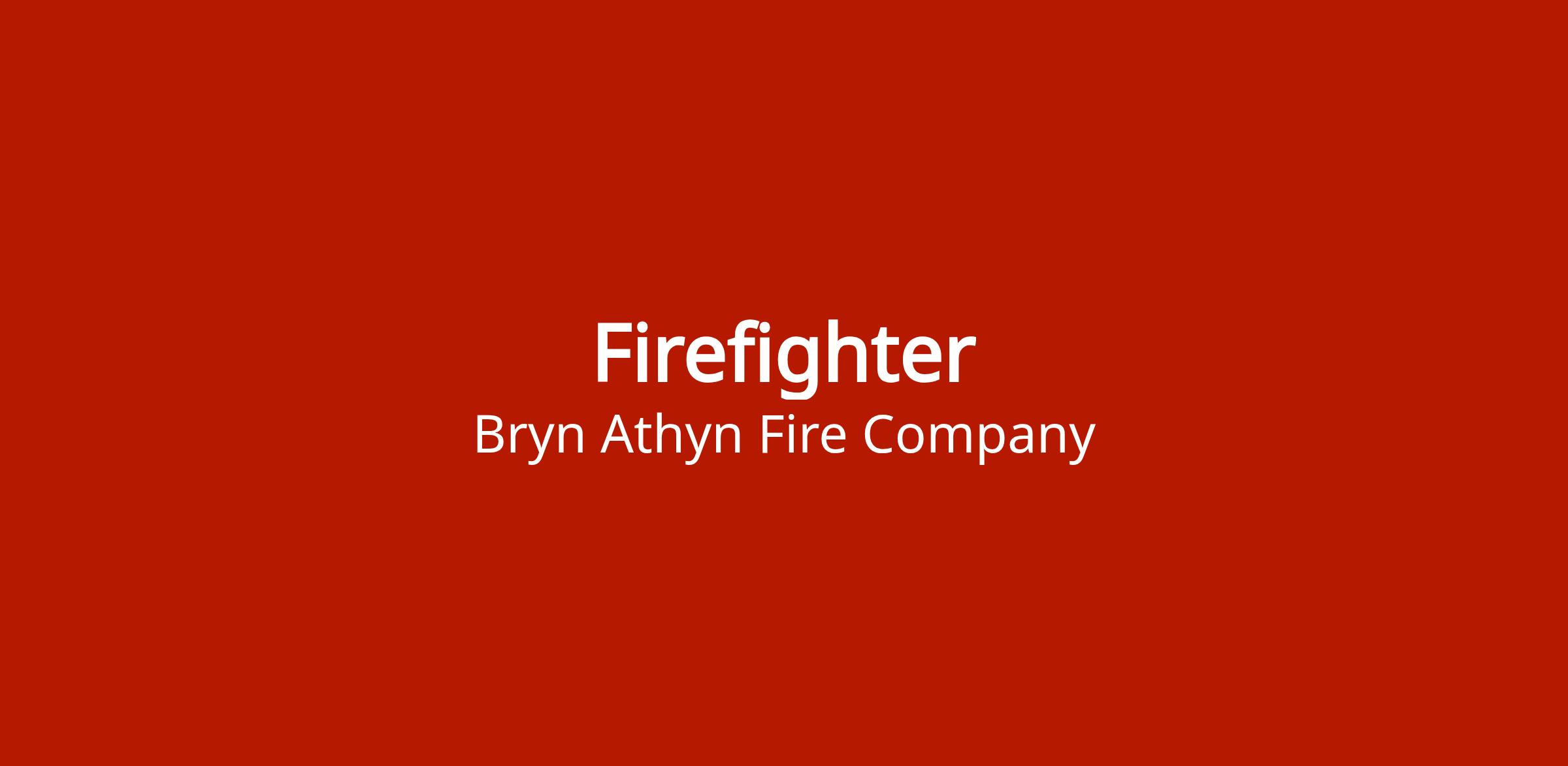 Volunteer firefighter position with Bryn Athyn Fire Company, a combination fire and EMS department serving Montgomery County PA. Training and all necessary gear provided at no cost. Open to candidates with or without prior firefighting experience.