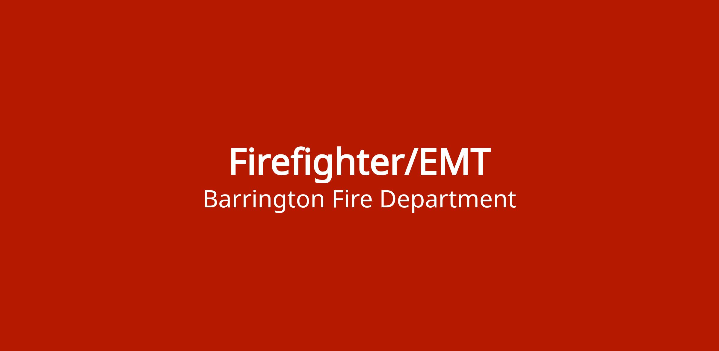 The Barrington Fire Department is seeking qualified applicants for the position of Firefighter/EMT. Candidates must demonstrate good moral character and judgment, possess the ability to handle high pressure situations, and demonstrate good problem-solving and leadership skills. Position offers paid vacation, sick and holiday pay, and healthcare benefits.