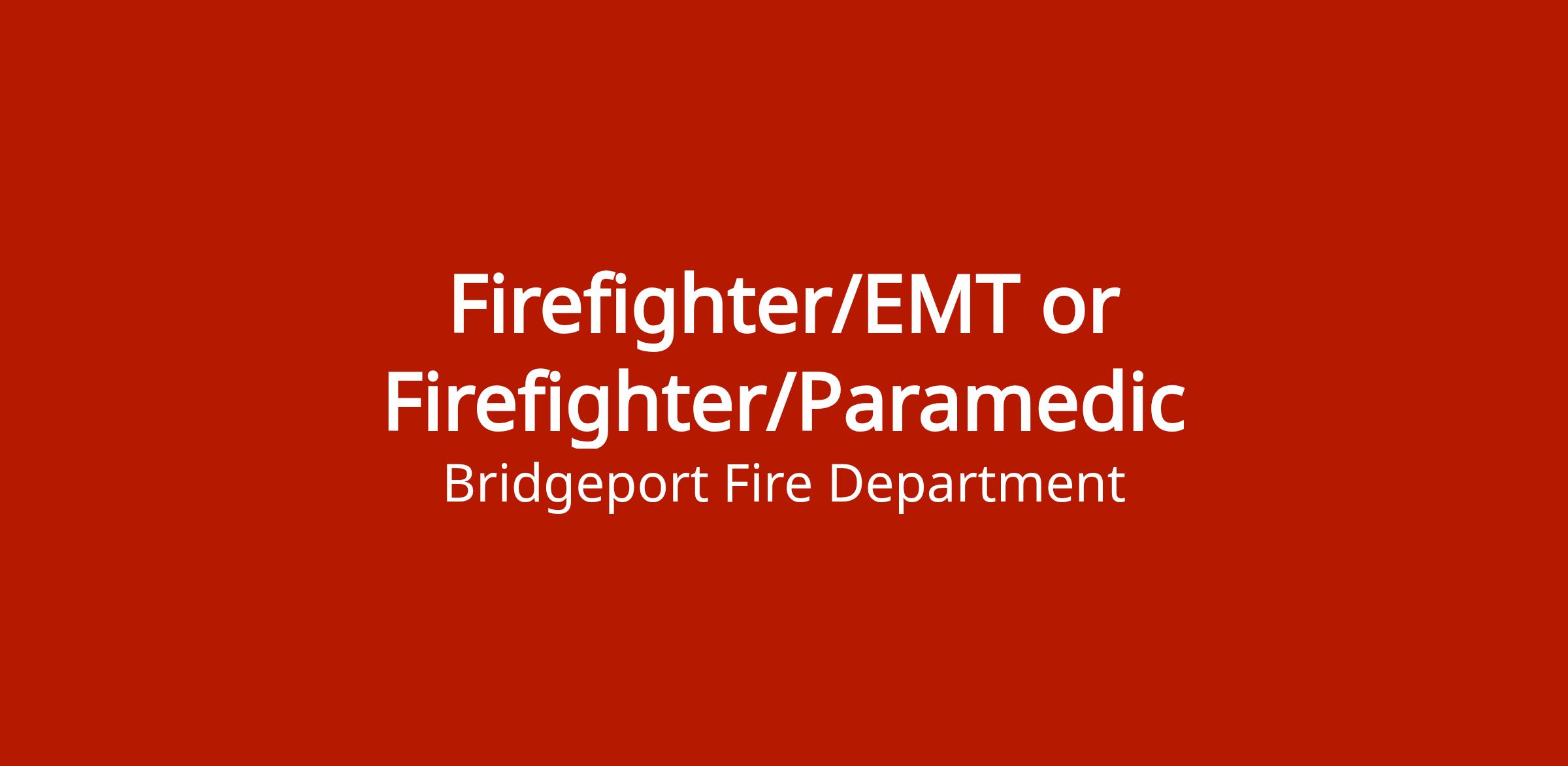 Firefighter/EMT or Firefighter/Paramedic position with the Bridgeport Fire Department. Position is listed as full-time.
