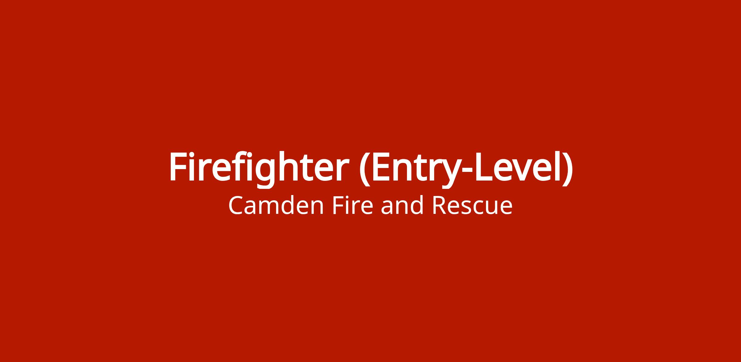 Entry-level firefighter position with the Camden Fire Department. No previous experience or training required. Applicants must pass a written exam, oral interviews, and physical agility test. Upon successful completion, applicants are placed on a hiring list valid for one year.