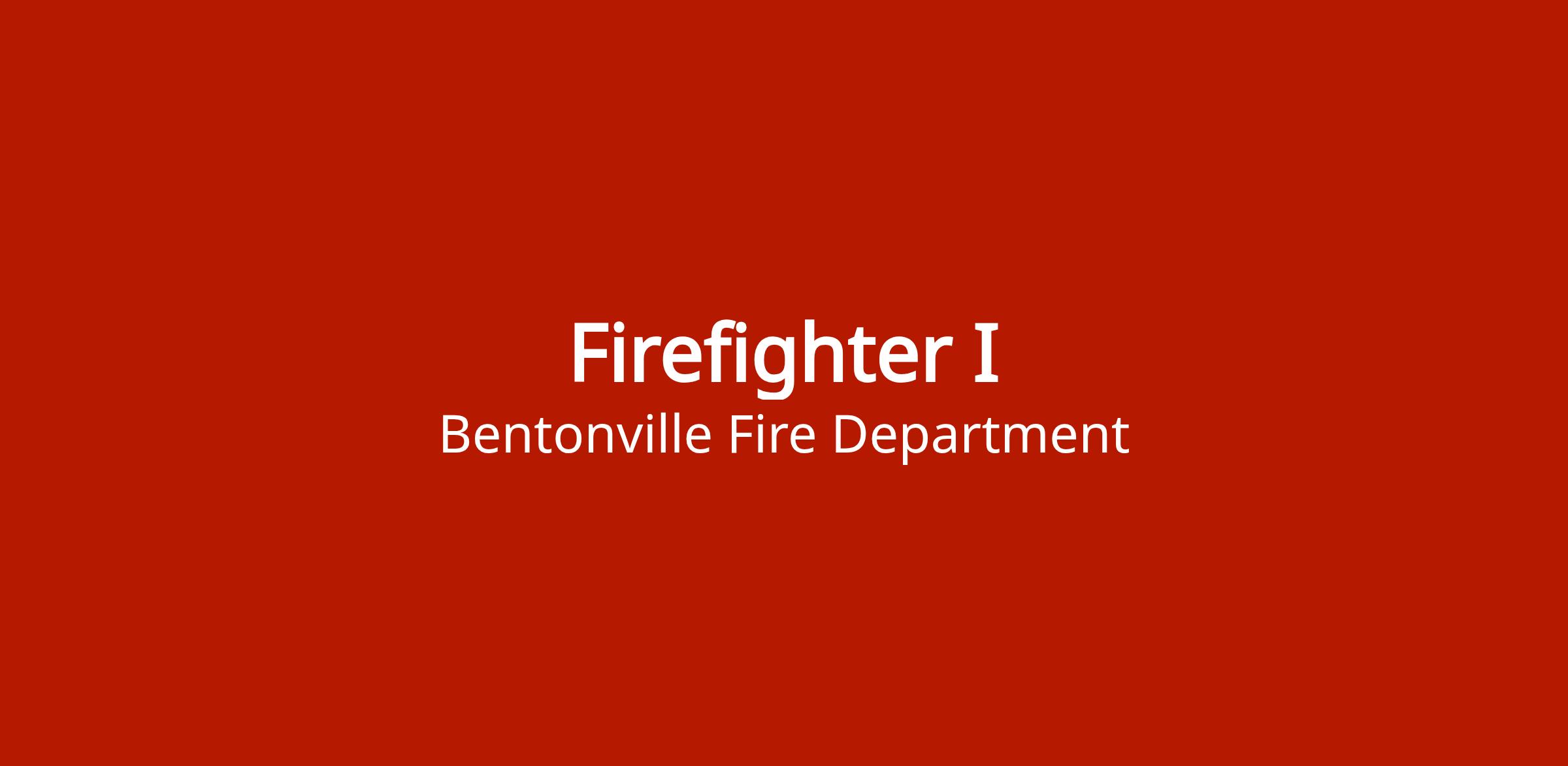 Full-time Firefighter I position with the Bentonville Fire Department. Complete details available in job posting.