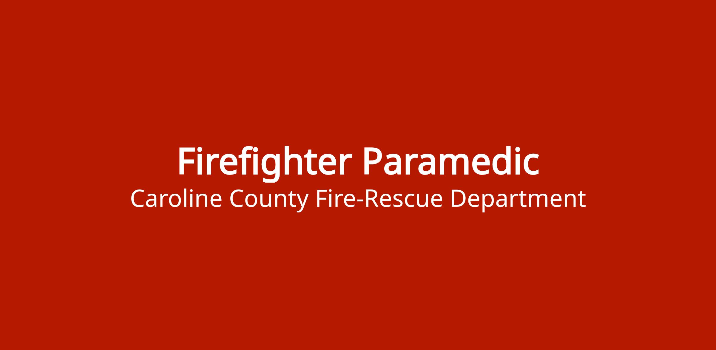 Firefighter Paramedic position with Caroline County Fire-Rescue Department. Location: Fire & Rescue. Contact: REBECCA HYSELL, Administrative Assistant Fire & Rescue.