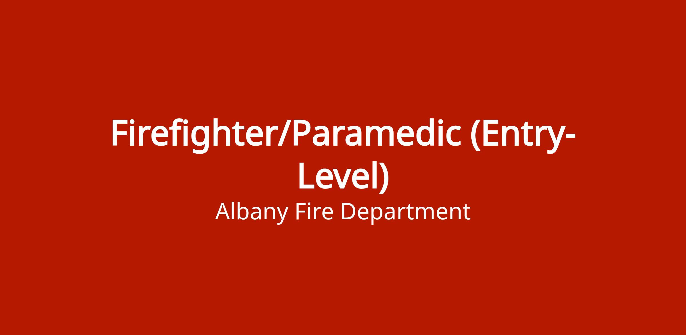 The City of Albany is accepting applications for Firefighter/Paramedic (Entry-Level). This is a full-time position in the Fire Department.