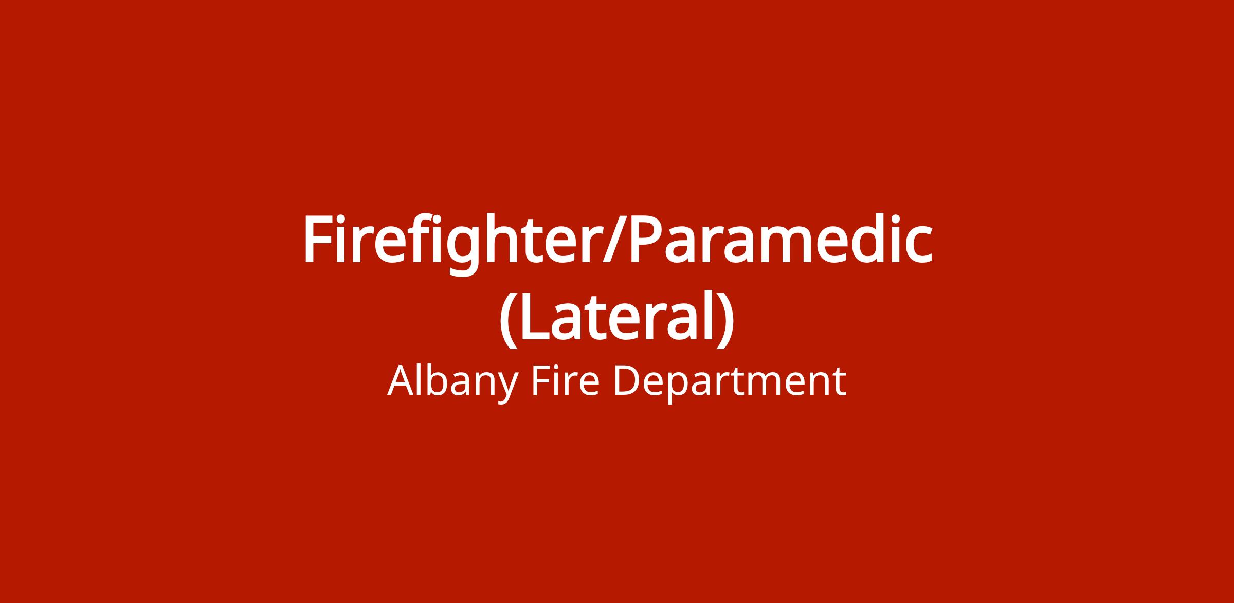The City of Albany is accepting applications for Firefighter/Paramedic (Lateral). This is a full-time position in the Fire Department for lateral (experienced) candidates.