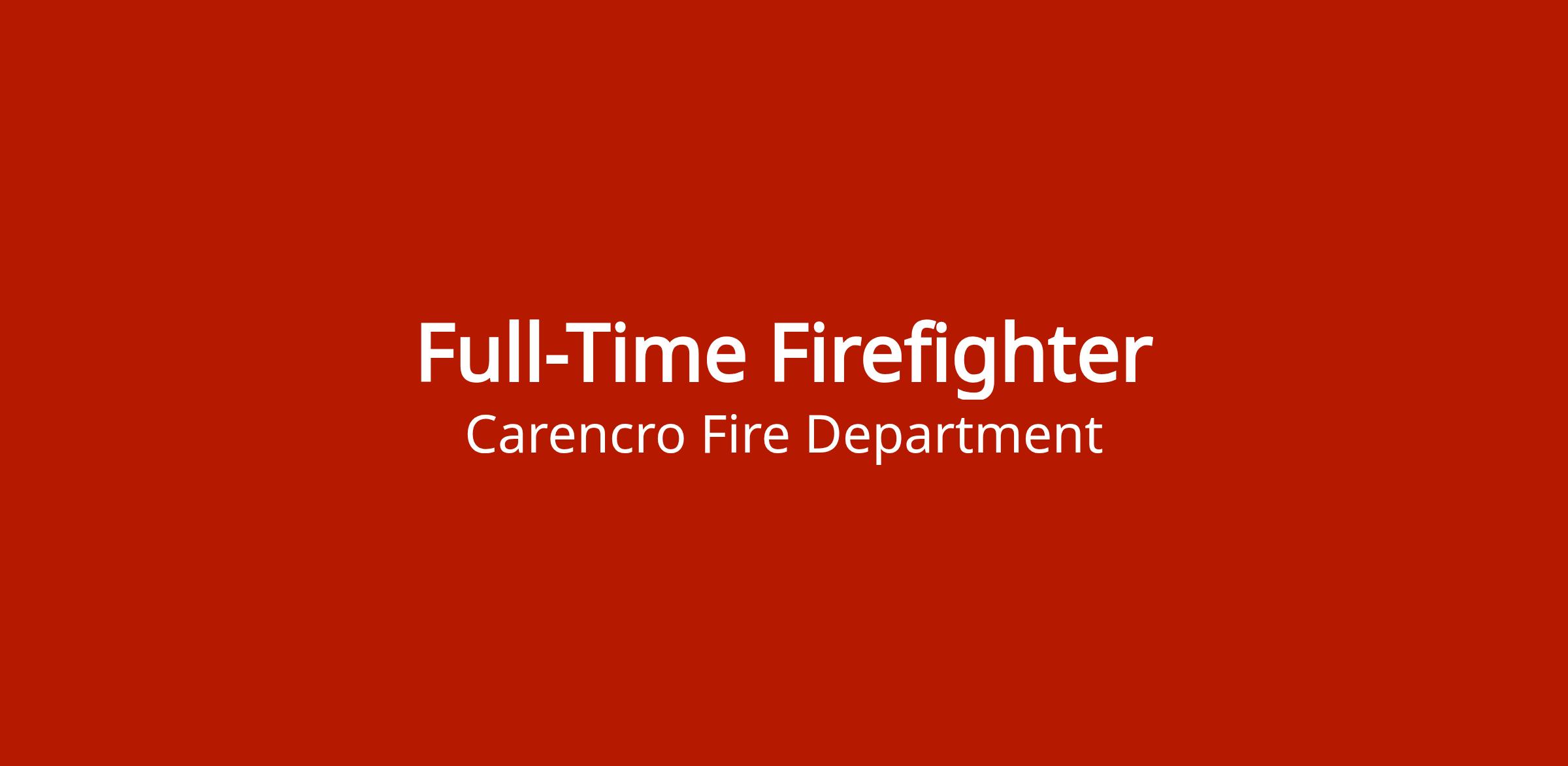 Full-time firefighter positions available with Carencro Fire Department. Respond to emergency calls, attend training sessions, participate in public events, and assist with station and equipment maintenance.
