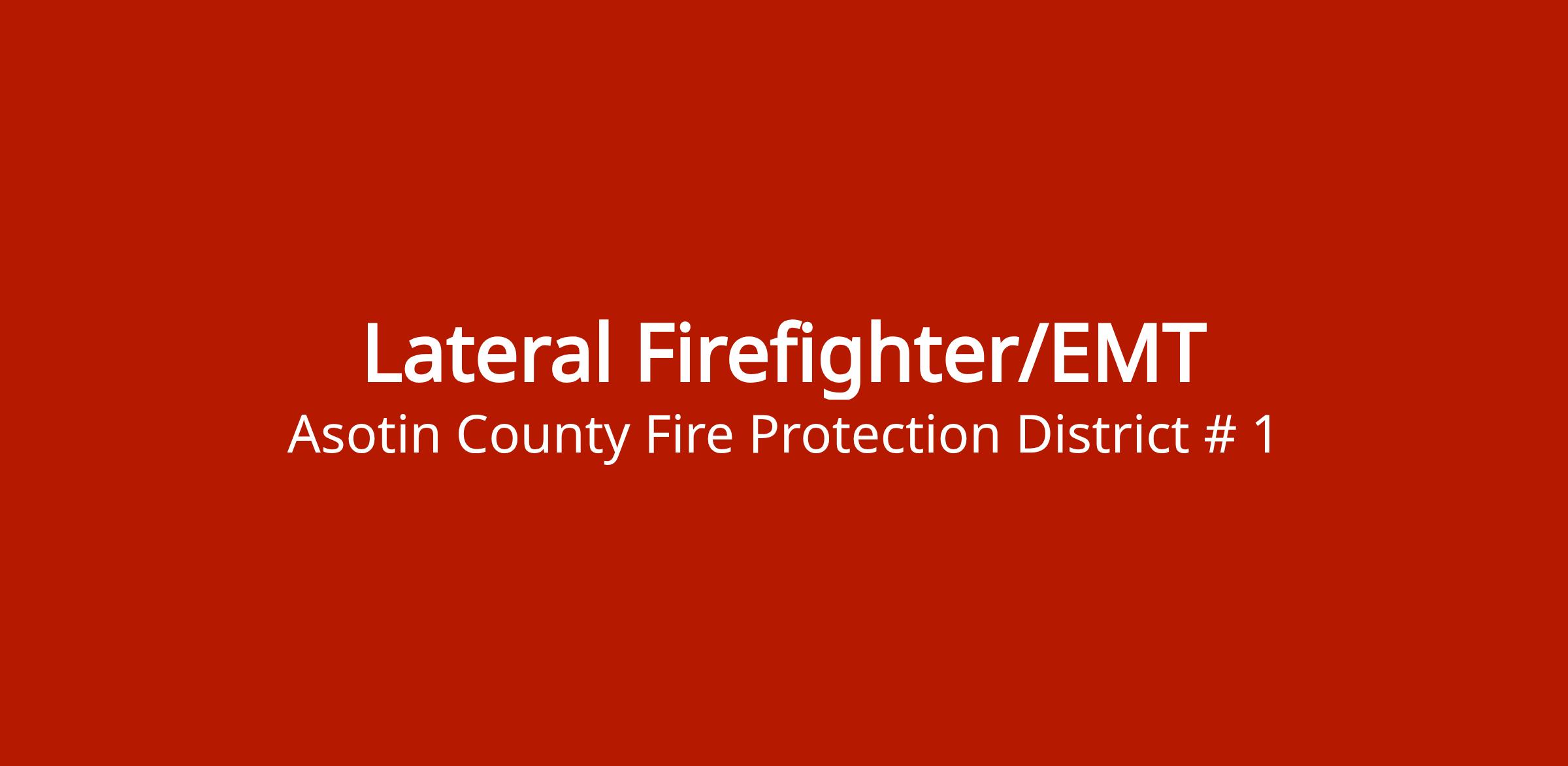 Lateral (experienced) firefighter position requiring EMT certification. For firefighters with prior experience.