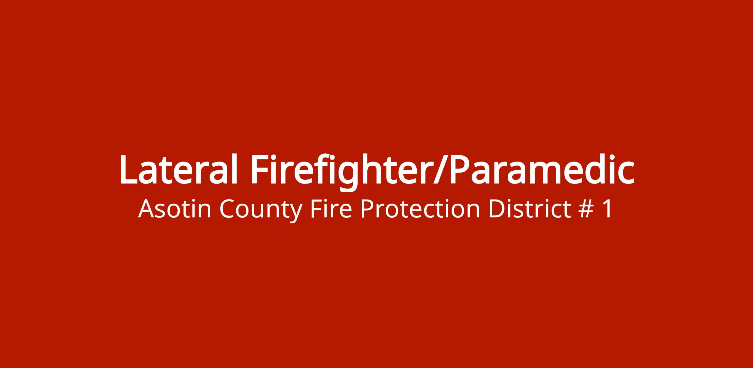 Lateral (experienced) firefighter position requiring Paramedic certification. For firefighters with prior experience.