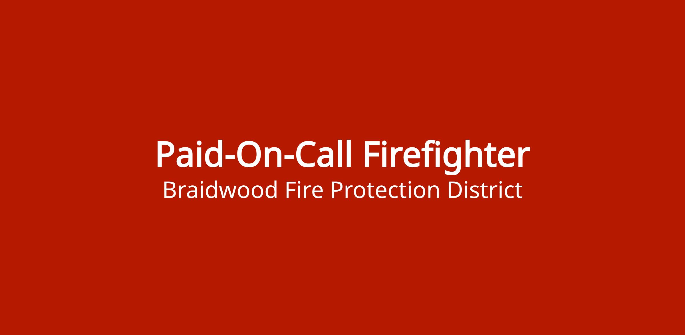Paid-on-call firefighter position with the Braidwood Fire Department. Applicants must meet standard firefighter requirements including age, licensing, certifications, and physical agility. Probationary period of 1 year before membership vote.