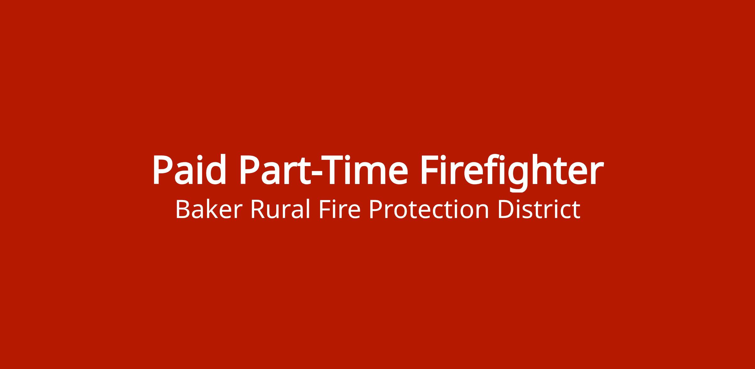 Part-time firefighter position with Baker City. Applicants must complete employment application and submit with required documents. Job description available for review.