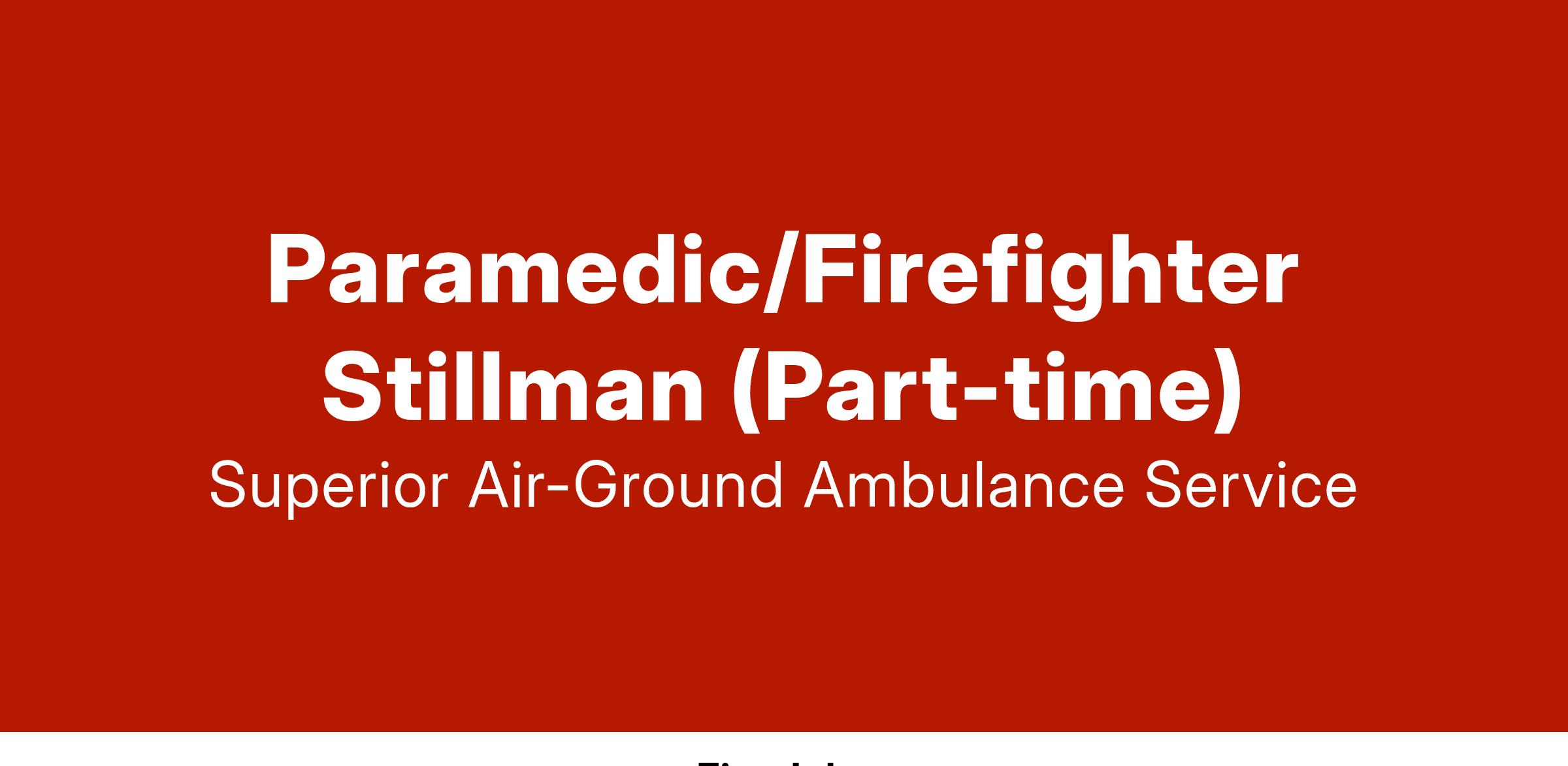 We are currently seeking a part-time Paramedic/Firefighter for our Stillman contract.