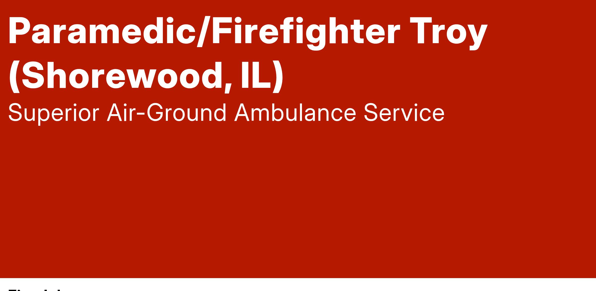 We are currently seeking a full-time Paramedic/Firefighter for our Troy contract.