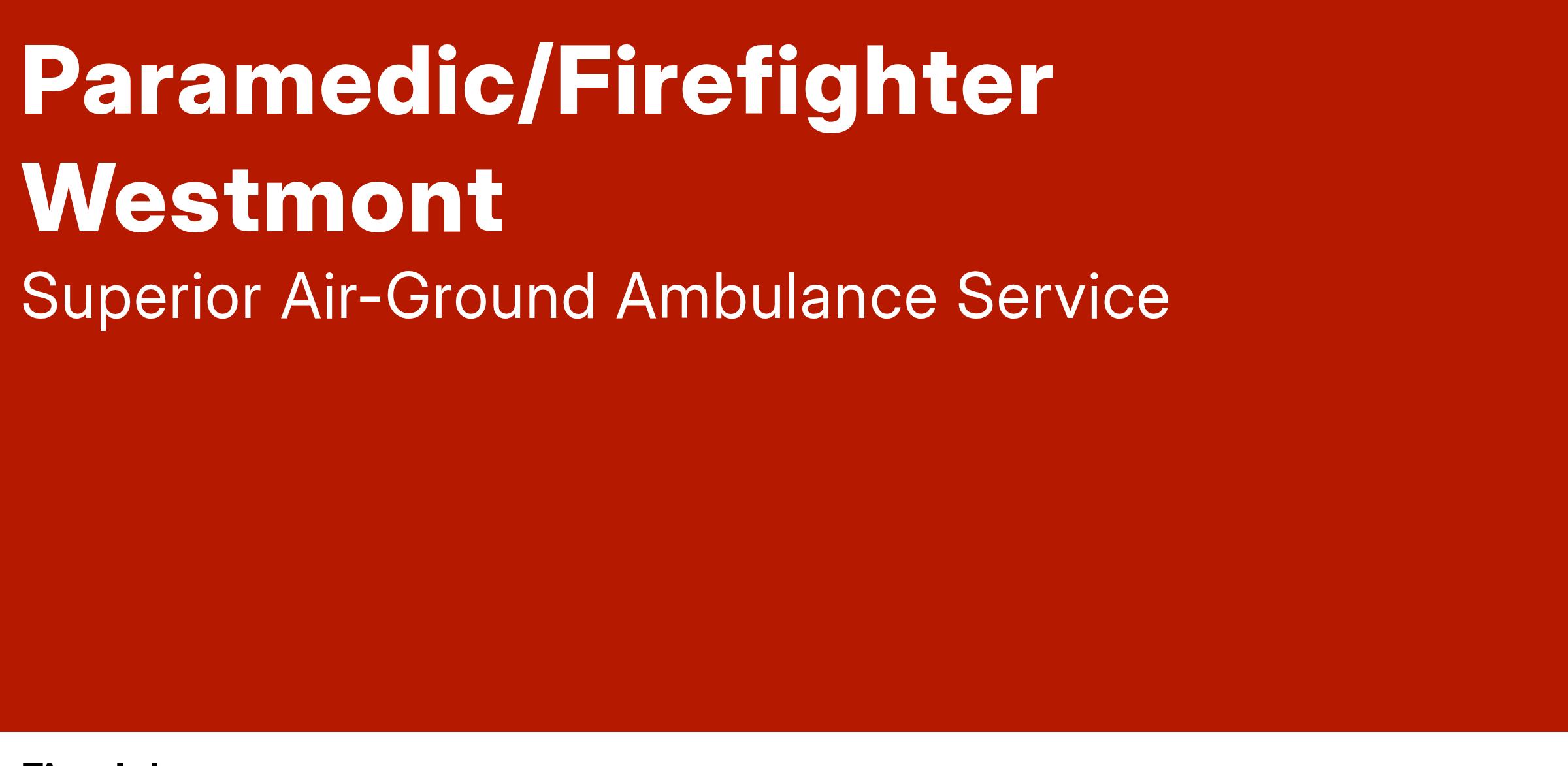 We are currently seeking a full-time Paramedic/Firefighter for our Westmont contract.