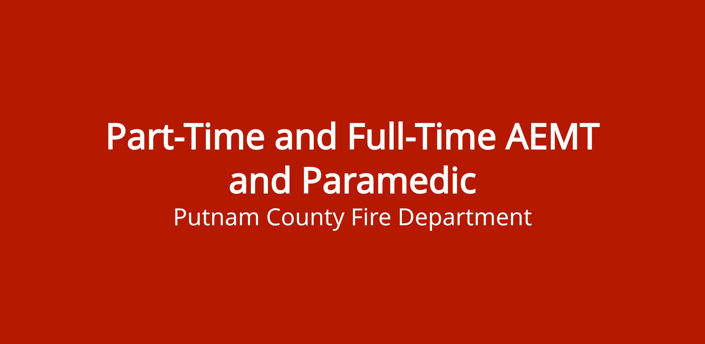 Part-time and full-time AEMT and Paramedic positions with Putnam County. These are firefighter-related EMS positions within the fire department. Status shows open and accepting applications.
