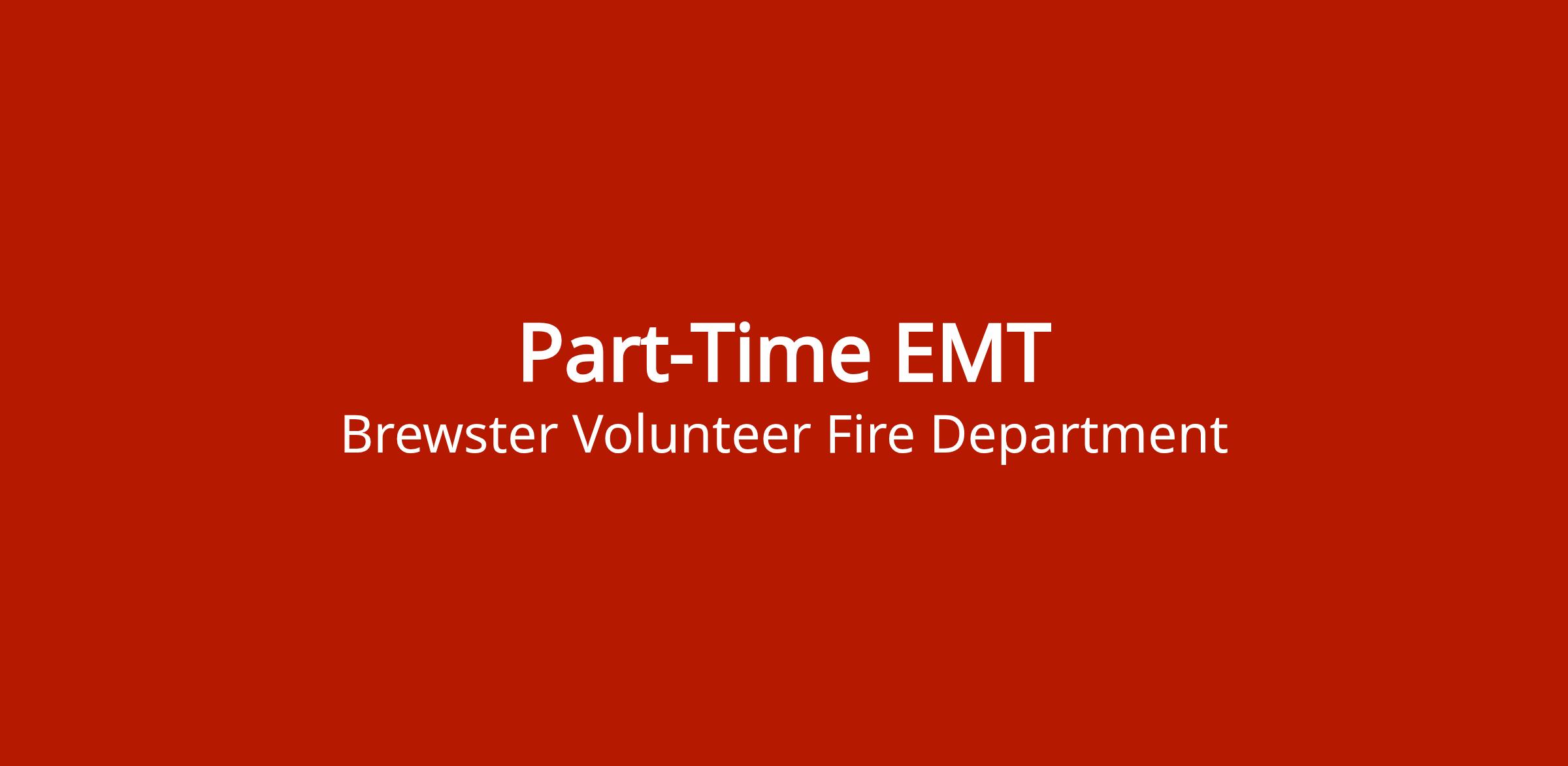 The Village of Brewster is accepting applications for part-time EMTs to meet increased staffing needs of the Brewster Fire Department Paramedic Program. Applicants must possess current Ohio EMT or AEMT License and current BLS Certification.