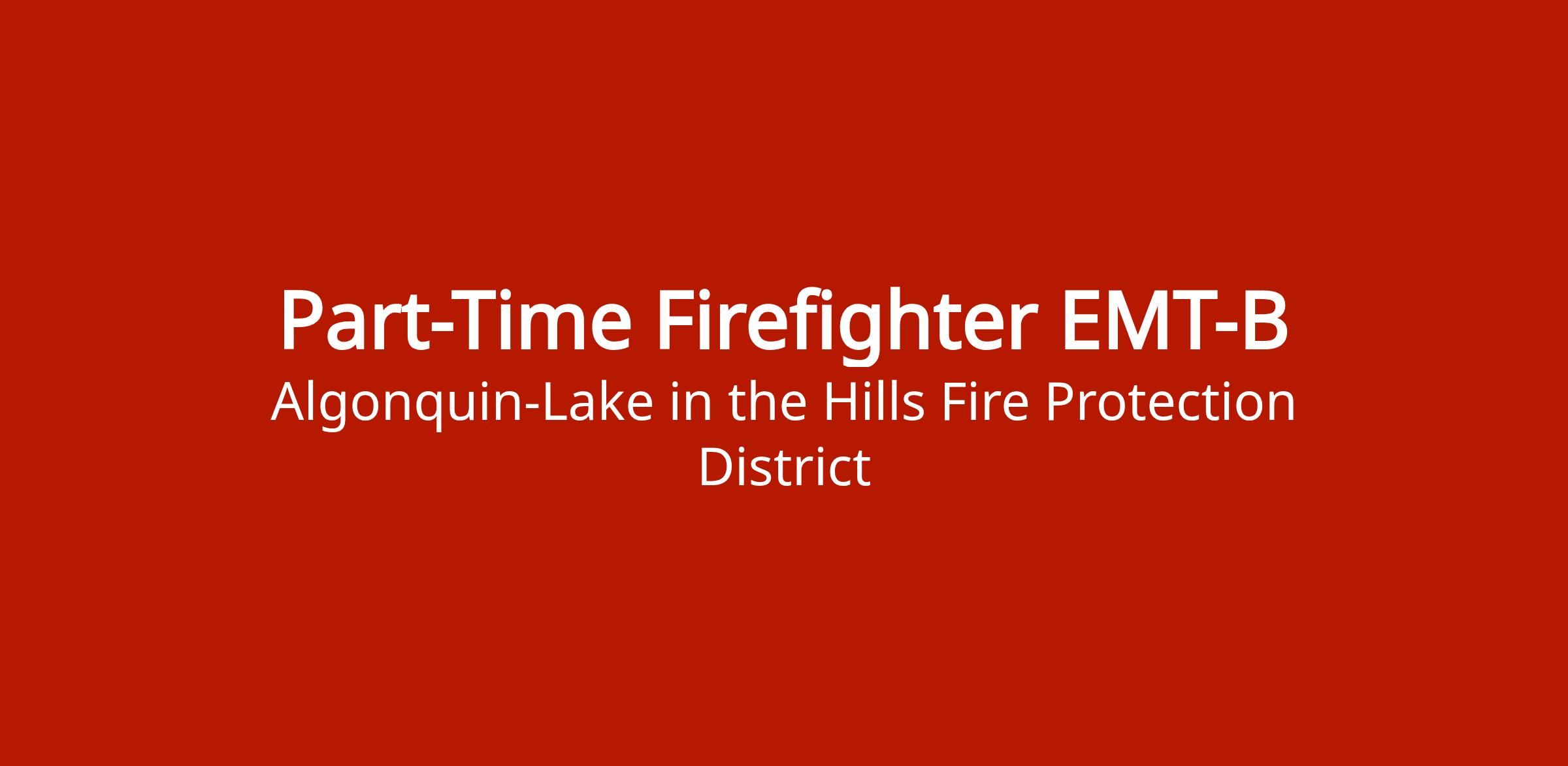 Part-time Firefighter / EMT-B position with 24 on/48 off shift schedule. Applications and information available for download on job posting page.