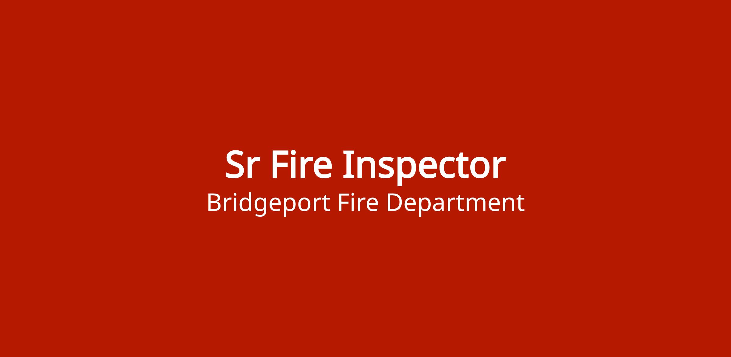 Senior Fire Inspector position listed under Competitive Promotional Examinations for the Bridgeport Fire Department. This is a fire prevention/inspection role. Specific details about applying are listed on the position detail page.