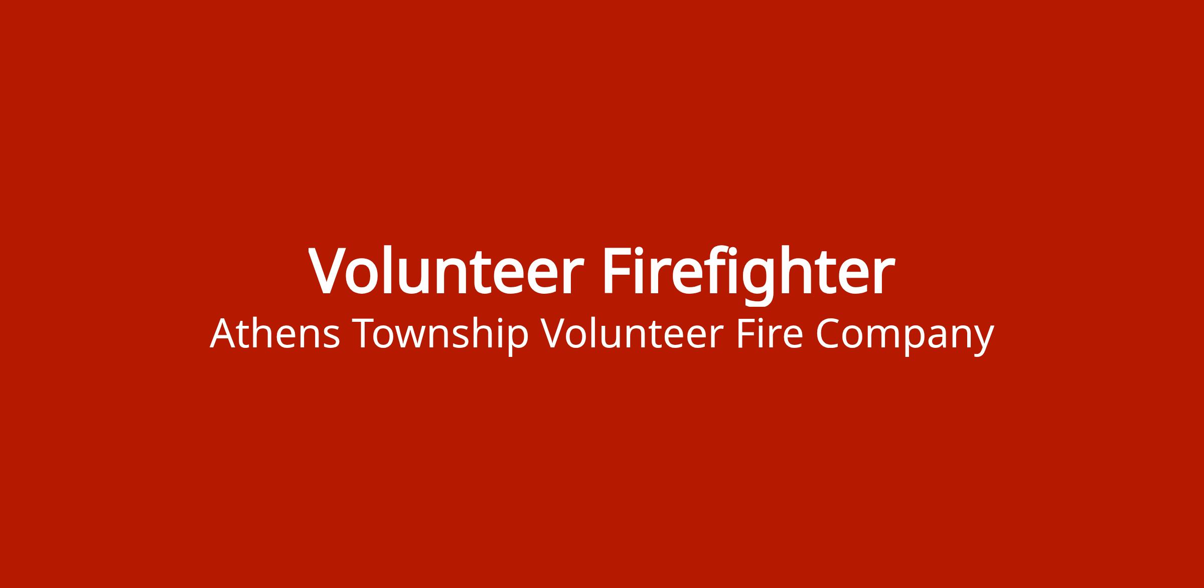Volunteer Firefighter position with Athens Township Volunteer Fire Company. Organization offers opportunities starting at age 14 with junior program, with ability to transition to full firefighting duties at age 18. Also welcomes retirees and offers various roles beyond firefighting including administrative duties, fundraising, and event support.